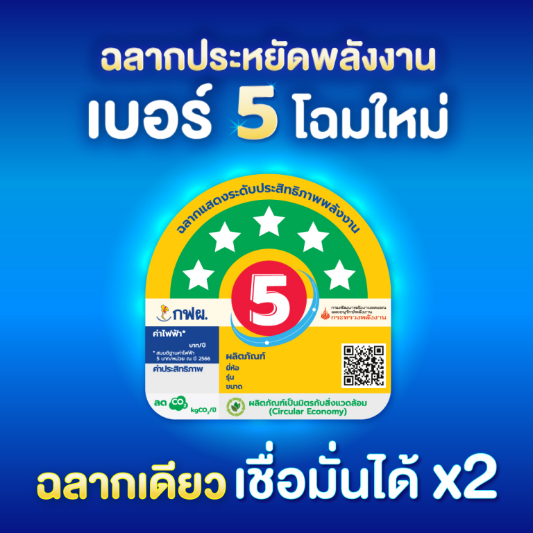 Uncategorized 🌟 ฉลากประหยัดพลังงานเบอร์ 5 “โฉมใหม่” ฉลากเดียวเชื่อมั่นได้ x2February 24, 2569February 24, 2026